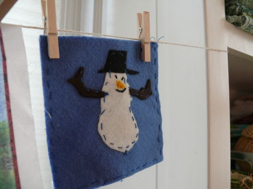 Geoff and the boys have been making progress in the garage... unpacking and organizing. Besides getting a brighter and safer garage, I am the fortunate beneficiary of long lost sewing supplies and projects, like Max's appliqued snowman from 2 years ago... I wondered were those were.