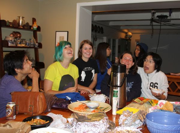 And so, inside for potluck dinner...